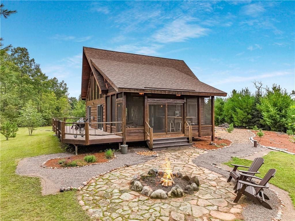 Peace and tranquility are yours at this chalet-style cabin on 21 forested acres with frontage on the Chippewa River ? including a couple of private islands! Designed for year-round enjoyment, the cabin features three bedrooms, one bath, a stone fireplace in the living room with stunning views, and a 3-season porch overlooking the river. Outdoor spaces include a patio with a fire pit and gardens, perfect for gathering with family and friends. The Chippewa River is known for excellent fishing (walleye, musky, smallmouth bass), paddling, and abundant wildlife, with miles of scenic shoreline and hidden islands to explore. Hunt, fish, or ride the nearby recreational trails right from your door. Many furnishings are included, making this a turnkey Northwoods retreat or full-time residence. Rarely does a property combine acreage, waterfrontage, and private islands like this ? don't miss your chance!