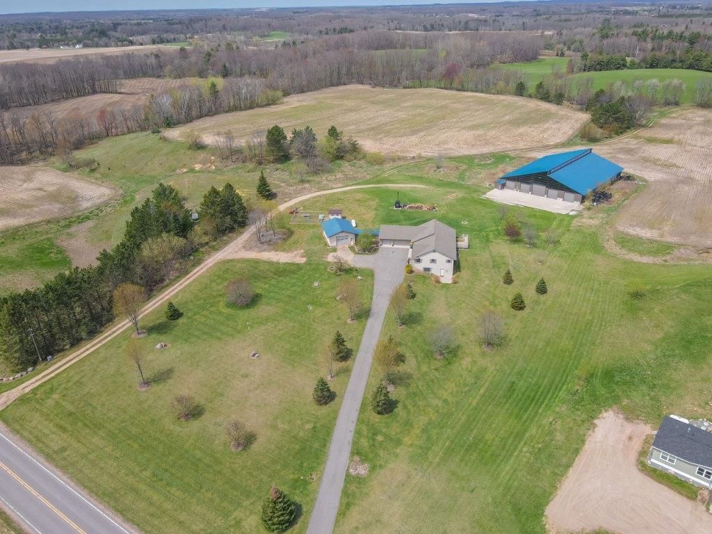 28.06 prime acres in Eland, approximately 15-minutes from Weston / 20-minutes from Wausau, a short commute with Hwy-29 only 5-minutes away. The parcel is primarily agricultural land (26 acres) with high-ground and rolling hills offering functional typography for crops or could be fenced for pasture animals. Additionally, it is already equipped with a state-of-the-art 12,800 sq ft barn (100-ft X 128-ft), built in 2012, with 20-ft x 98-ft concrete approach on both ends of the barn. Private well and electric service already intact. Inside features two 20-ft ceiling fans for optimal airflow / cooling, along with 10 Haas insulated overhead doors, six sets of radio controls, and 12 exterior 3 button stations for convenient transportability in / out. The roof features 28-gauge steel with 6 inches of insulation and an aluminum ceiling. Treated curtain boards with a 4-ft chain link on the bottom and bird wire on the ridge curtain. Optimally designed for beef cattle with 250-ft of headlocks, 24-ft x 10-ft feed curb, 5-in thick feed alley, 4-in thick scrape alley (16-ft wide with 12-in curb).,The building offers multiple future uses: passive income from storage, other farm / hobby animals, or a workshop. The possibilities are endless. Located in the Town of Elderon (relatively low taxes - $1,029 in 2024), and is located in the Wittenberg / Birnamwood School District. Call for more information today!