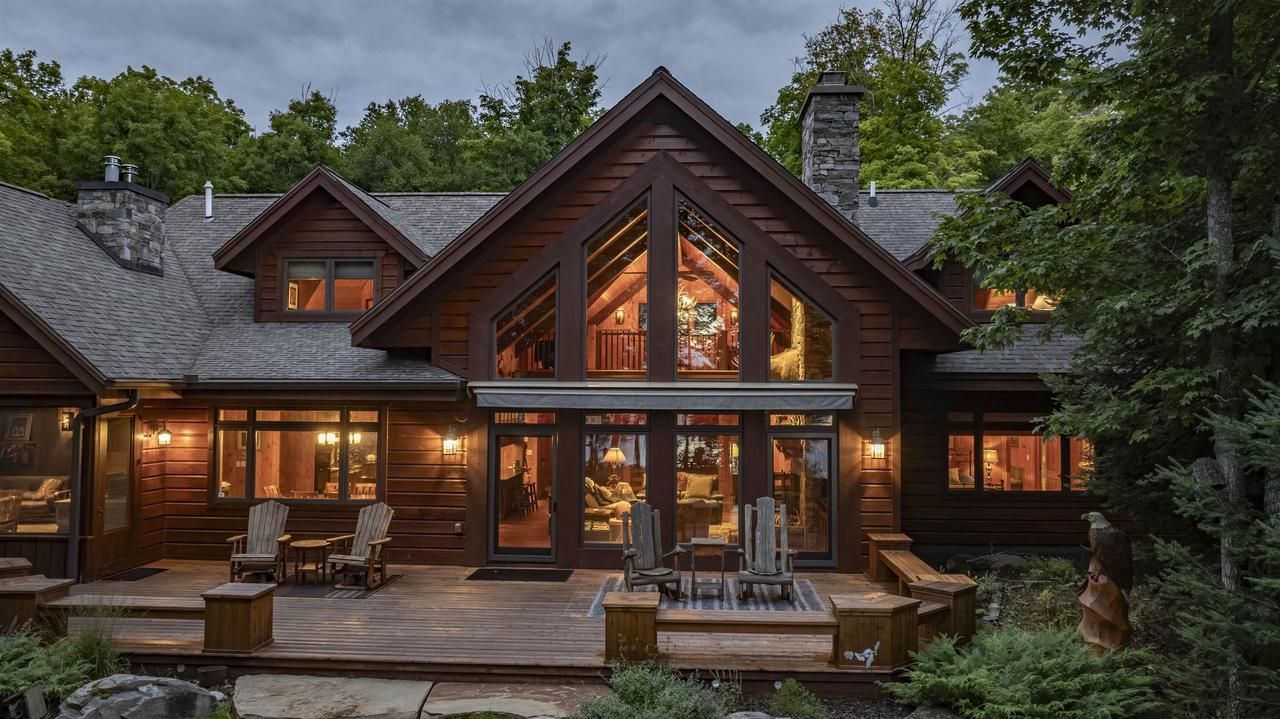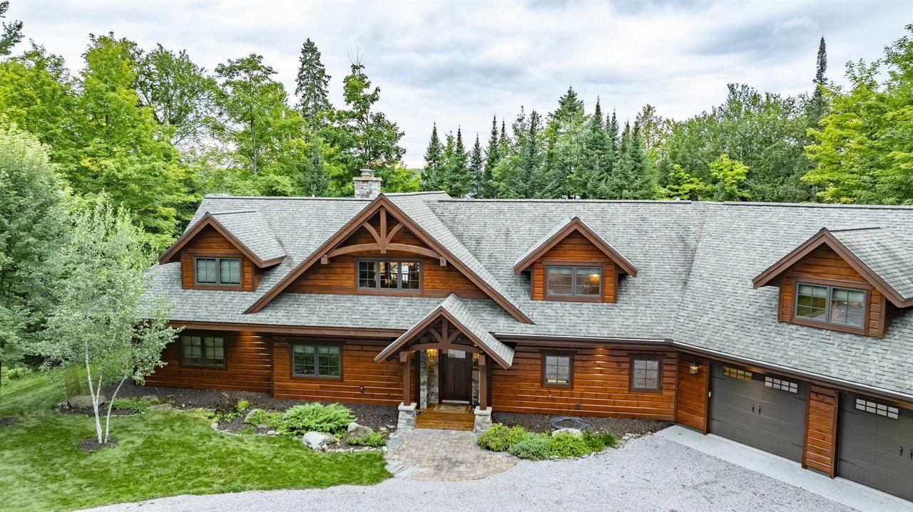 Move-in ready executive home on 10 private acres on serene Homan Lake in Iron County, MI. Beautifully landscaped with freshly stained buildings and epoxied garage floors, this property offers engineered elm floors with in-floor heat throughout, and the attached garage. Openconcept design features a chef's kitchen with soapstone counters, Alder cabinetry, vaulted ceilings, and abundant natural light. Enjoy multiple gathering spaces with a Woodstock Soapstone fireplace, Montana stone fireplace, and an all-season sunroom with built-in grill and lake views. The main home offers 4 bedrooms, 2.5 baths, plus guest quarters above the garage. A 1,590+ sq ft guest house includes a sauna, kitchen, and entertaining space. Waterfront highlights include a firepit and 72-ft dock. Measurements from Iguide