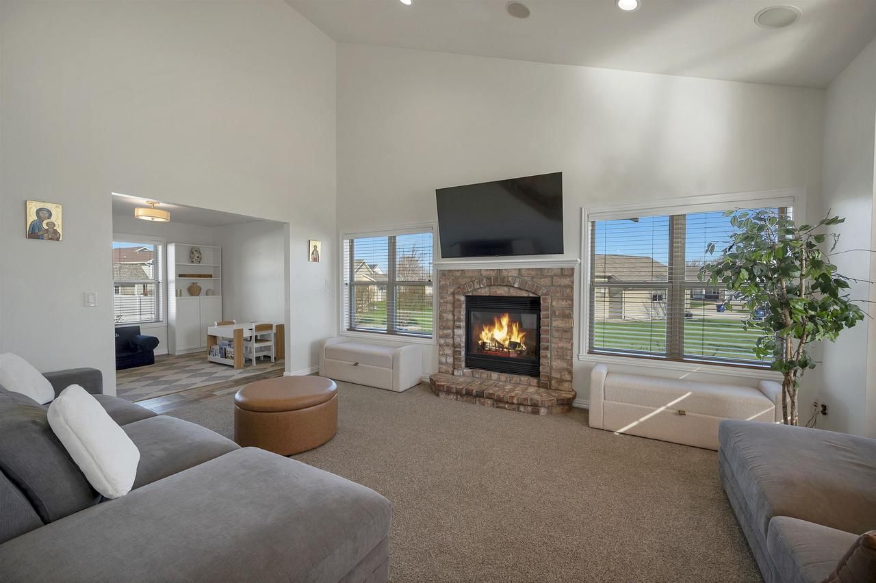Spacious 2-story home located in the desirable Ledgeview area. The bright living room features tall ceilings and abundant natural light. The main floor offers a versatile flex space, perfect for a formal dining room, office, or playroom. The kitchen includes ample cabinet and counter space along with a convenient pantry. First-floor laundry is located just off the mudroom for added functionality. The finished lower level is ideal for entertaining, featuring a large rec room, wet bar, half bath, and bonus room. Upstairs, you'll find three generously sized bedrooms, including a primary suite with a private ensuite bathroom. Enjoy the outdoor space with a patio overlooking the spacious backyard. This home offers a functional layout with plenty of space to fit your needs.