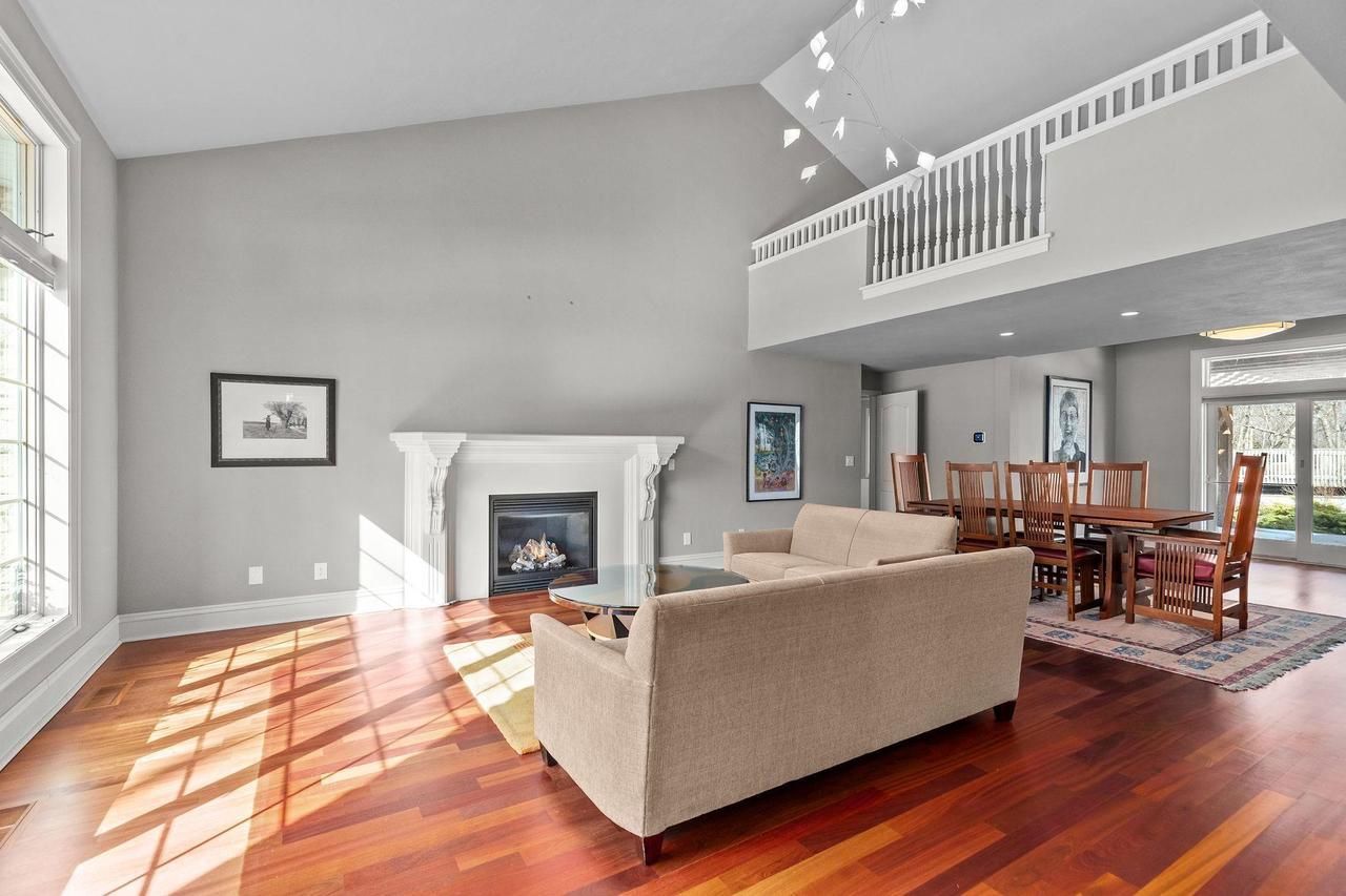 Experience distinctive, carefree living in this stunning Stroebe Island condominium,nestled in a spectacular woodland setting surrounded by water. This desirable end unit showcases dramatic spaces illuminated by walls of southern -facing windows & soaring cathedral ceilings.High end updates shine throughout,incl. Brazilian cherry wood floors & a completely renovated kitchen with Bosch appliances. The spacious first floor primary suite, laundry room & common areas, makes this home suitable for all ages. The striking gas FP anchors the bright, open foyer, living room & dining area. Enjoy privacy with two generous bedrooms located on the second fl, along with a full bath & large loft area. The lower level wine cellar, family room & theater area are a bonus! See extensive update list.