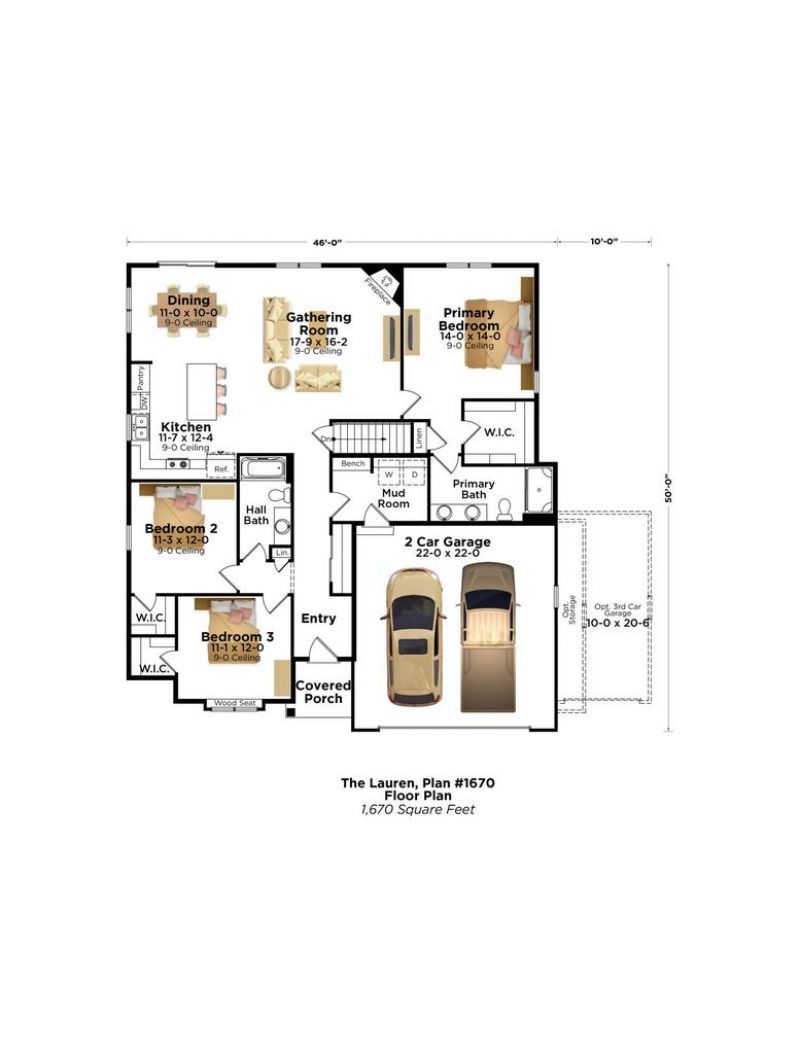 Ready Now! New Construction Ranch Home! It's not just a home...it's a Lifestyle! A lifestyle of Freedom! Stress-Free from repairs, remodeling, and/or the anxiety of your time needed on the weekend working on the house. Come and see our Lauren Floor Plan! This smart design separates the spacious primary bedroom from the secondary bedrooms with generous communal living space, including the gathering room, kitchen, and dining. The kitchen boasts plenty of granite counter space and maple cabinets in a dusk tone for storage, along with a granite prep island that doubles as a snack bar. Off the gathering room, is the primary bedroom with a private, dual vanity bathroom with a five-foot shower and walk-in closet.