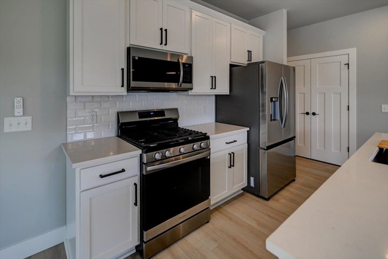 Just Completed! Rare find new construction zero lot line Ranch Home in Stoughton. Located at the north edge of beautiful Stoughton WI and 12 minutes from Madison. This Alterra Design Ranch Home features open floor plan, open kitchen, living room features big windows with great sunlight, large Quartz kitchen island, SS appliances, pantry, mudroom. Main level primary bedroom, 2nd bedroom. this home is finished in lower level with family room and 3rd Bedroom, additional bathroom. 2 Car garage. Private patio with park view. Minutes from Walmart Supercenter, Restaurants, Coffee shops!