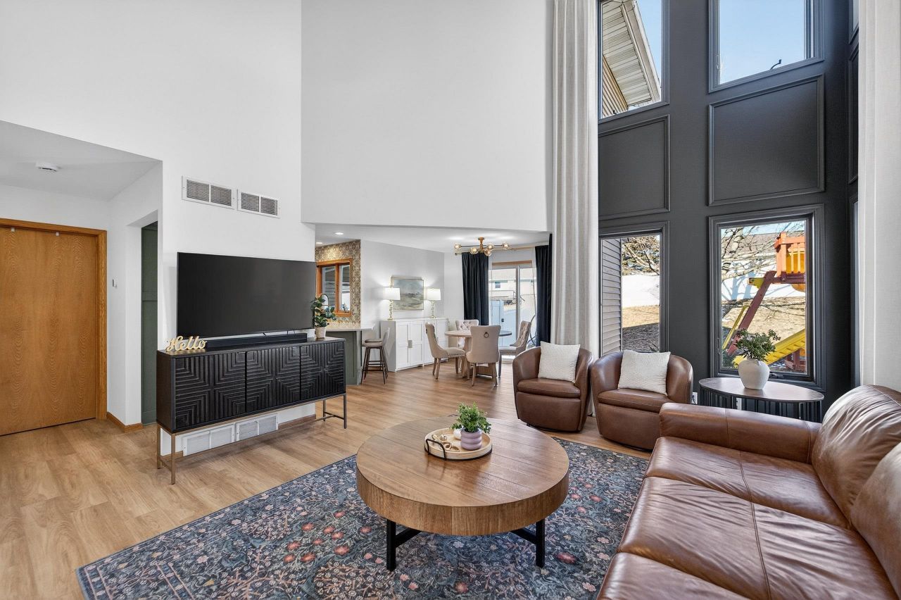 Welcome home to this charming & thoughtfully updated 2 story townhome in the heart of Dodgeville! Enter inside to find soaring ceilings w/ 2 stories of stacked windows for ample natural lighting, new LVP floors, & eat-in kitchen w/ new Caf appliances: double dishwasher, double induction oven, microwave w/air-fryer & oven feat, premier fridge with a beverage drawer, quartz counters/breakfast bar, tile backsplash, refreshed cabinetry/hardware, and dining nook w/ walkout. Upstairs find all 3 beds including the Owners Suite w/ private en-suite bath boasting both walk-in shower & soaking tub, plus a spacious walk-in closet. Brand new fenced in yard w/ patio is perfect for kids and/or pets. Also enjoy newly added permanent exterior lighting for seasonal displays or year-round white lighting. The unfinished basement has an added egress window for all your future ideas such as a legal 4th bed and another full bath! Not to forget the main level laundry & 2 car attached garage. Don't miss out!