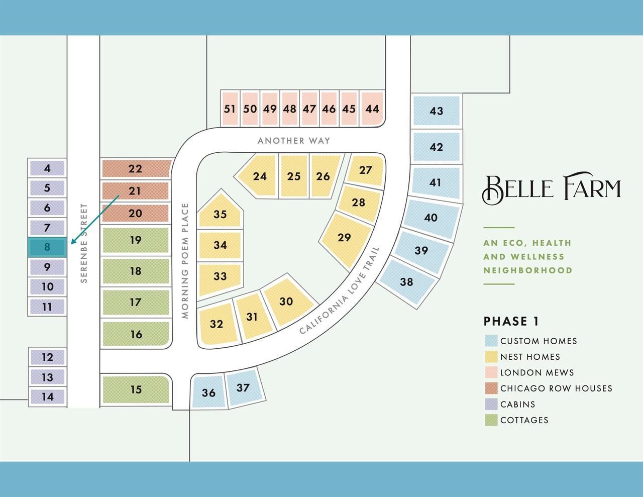 Lot 8 at Belle Farm has this ready to build home starting at $799,000 including lot price and features a metal roof, solid hardwood floors, Wolf range, Bosch refrigerator & dishwasher, EV-ready wiring and curated interiors. These cozy and light-filled standalone homes are a joy and a rarity... combining high quality, high functionality and attention to design. This home at Belle Farm serves as a peaceful antidote? an example that less can be more. Inspiring interiors, front porches and secluded side yards allow for both privacy and opportunities to connect. Solar panels and geothermal HVAC mean lower energy bills and more resilience in the face of power outages. Belle Farm was founded on the idea that there is a different way. That the places we live can and should inspire us, connect us, help us be healthier in mind and body, and reduce our environmental impact. Seller is offering a $20,000 geothermal credit at closing for buyers who close on or before May 31, 2026.