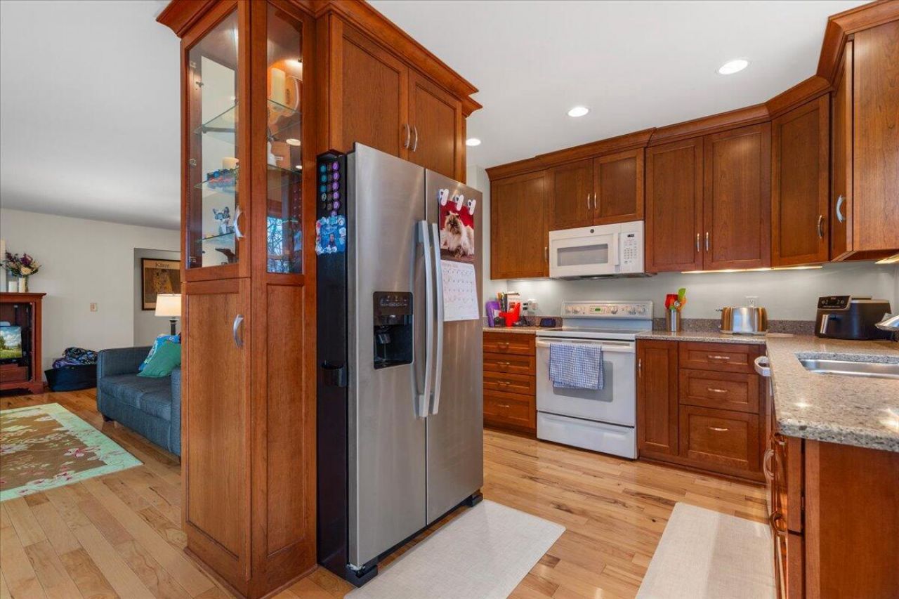 Calling all nature lovers, this 2182+ sq ft, 4 bedrooms (3 with walk-in closets & 2 with on-suite bathrooms, 1.5 bathrooms on the main level & 1 full bath with a walk-in shower in the lower level, village of Grafton ranch sits on .61+ ac has a large, raised back deck and a walkout basement to a very private backyard that butts up against mole creek and overlooks a conservancy like setting complete with a fire pit & wildlife giving one that up north feel without ever having to leave home. Inside you will enjoy a remodeled kitchen w/maple cabinets, quartz counter-tops, a new 2025 refrigerator, beautiful hardwood flooring, a natural fireplace, main level laundry & even a built-in sauna. Roof & siding were replaced in 2018, H2O gas water heater in 2020. This one is special... so don't wait