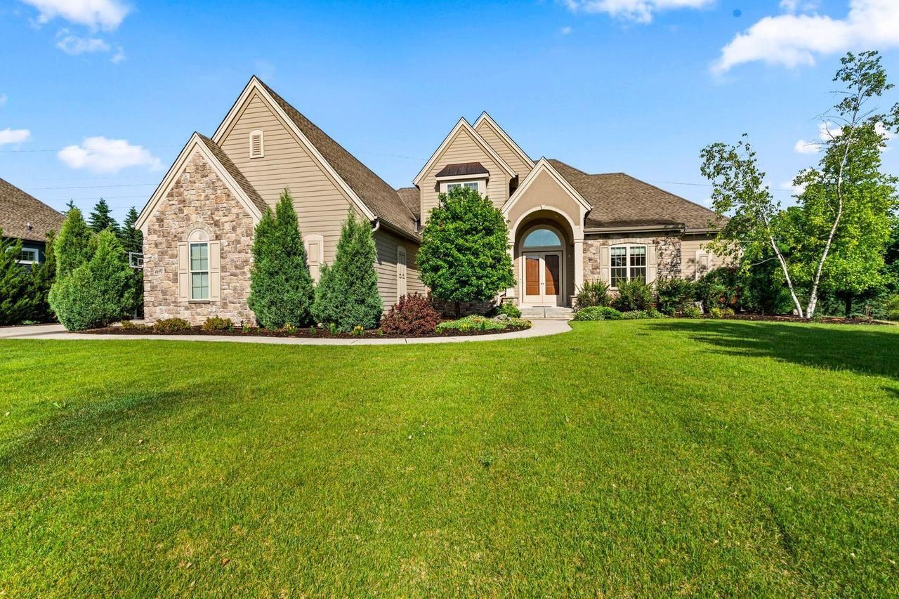 Discover luxury living in Bradon Preserve, one of Brookfield's premier neighborhoods in the highly sought-after Elmbrook School District. This stunning custom home offers over 5,100 sq ft of beautifully designed space with soaring ceilings and sunlit rooms. Enjoy the spacious great room, formal dining, private den, and a chef's kitchen with large island and abundant cabinetry. The main floor primary suite features dual walk-in closets and a spa-like bath. A generous laundry/mudroom leads to the oversized 4-car garage with room for storage. Upstairs, two large bedrooms share a Jack & Jill bath. The finished lower level boasts a kitchenette, rec space, two additional bedrooms, full bath, and a fitness room. Outside, relax on the 500 sq ft deck or gather around the firepit. Virtual staging.