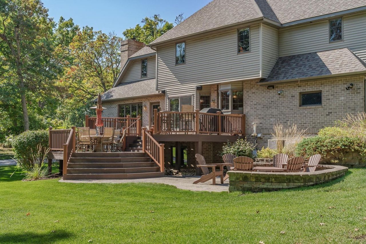 Location Location Location with this stunning 1.5-story brick home on a spacious .58-acre lot in Portage?within walking distance to schools! This 4-bed, 3.5-bath home offers comfortable living and thoughtful updates throughout. Main floor features a cozy living room with gas fireplace and a front den. Finished lower level includes a rec room, office, pool table area, second kitchen, and large storage room. Enjoy the outdoors on the new Trex deck and patio. Heated 3-car garage with basement access. Recent updates: new roof (2021), newer furnaces and A/C, 4-year-old Sub-Zero fridge, new water heater, and irrigation system. Move-in ready and perfect for family living with space to entertain inside and out.