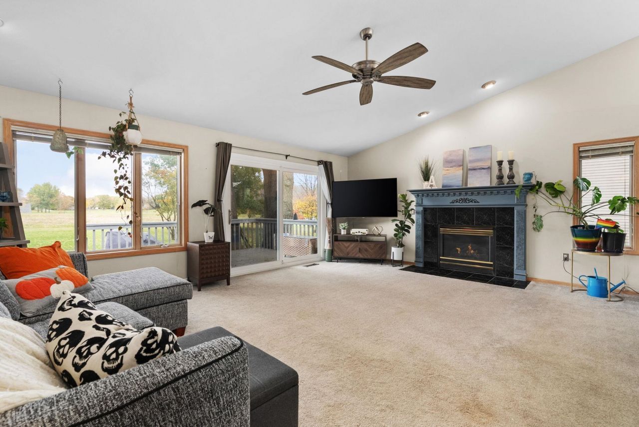 Ranch-style half duplex in the desirable Richmond Hills neighborhood! This legally established condominium has no active association or condo fees. Featuring an open-concept layout with vaulted ceilings, a split 2-bedroom design, and 2 full bathrooms on the main level. The updated kitchen offers quartz countertops, stainless steel appliances, and an optional washer/dryer hookup in the pantry. The living room boasts a cozy gas fireplace and overlooks Richmond Hill Park. The finished lower level includes a spacious family room, half bath, and den/office?perfect for work or relaxation. Enjoy low-maintenance living in a prime location!