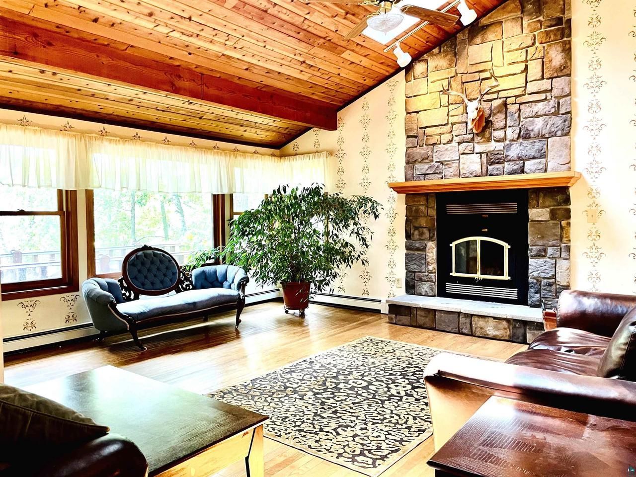 This waterfront home on Buskey Bay on the Pike Lake chain of lakes includes 4 BDRs/3BAs, with 2748 sq ft of living space. It is a single-owner custom-built home with unique and beautiful lakeside landscaping and amenities that are sure to stand out and be enjoyed! This home has it all: vaulted ceilings, hardwood floors, a stone wood-burning fireplace, and a kitchen and living room that look straight out at the water. The wood-fired sauna and walk-out lower-level patio make it as comfortable as it is stunning. Every major update is already done?new roof, new dock, outdoor kitchen, new decking, remodeled bathrooms, and freshly stained siding. Fiber optic internet. Attached 2-car garage. Sold fully furnished. World-class muskie, walleye, bass, and panfish fishing and swimming right off your dock. Properties like this on the Pike Lake Chain don't come twice'schedule your showing today.