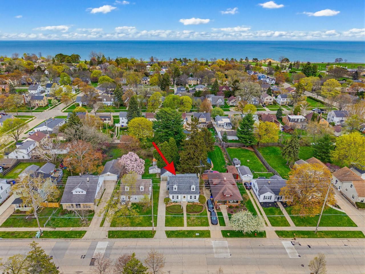 Charming Cape Cod in a sought-after Kenosha neighborhood. This spacious 2BR, 1.5BA home blends comfort and character with an unbeatable location - just a short walk to Lake Michigan, perfect for scenic strolls and relaxing summer evenings. Inside, you'll find beautiful HWF's throughout, with abundant windows that fill the home with natural light. The large living room features a cozy natural fireplace, while the generously sized DR is ideal for hosting. A bright & inviting den w/French doors offers the perfect space for a home office, reading nook, or playroom. Step outside to an expansive, fully fenced backyard w/a 2-tiered deck - ideal for entertaining, gatherings, or simply unwinding in your own private outdoor retreat.