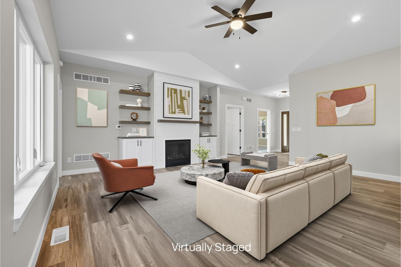 Discover effortless living in the sought-after Saddle Ridge Community! This ranch-style home features zero-step entry, a 2-car garage, vaulted ceilings, floor-to-ceiling fireplace, and Amish cabinetry with quartz countertops. Year-round amenities include Swan Lake, two golf courses, pickleball, basketball, and a community pavilion. The spacious main-level primary suite flows seamlessly with the open floor plan and 36" doorways. Bring your ideas for the unfinished basement to create even more living space. Located in Town of Pacific with low taxes. Condo fee: $180.