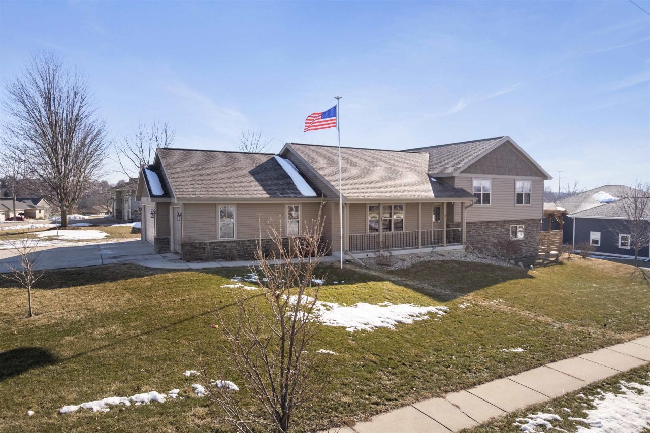 Stunning 2019 home in one of Mount Horeb's most desirable locations?steps from military ridge trail, multiple parks, and just blocks from downtown dining, shops, and community events. This modern, move in ready home offers nearly 3,000 sq ft with an open main level, hardwood floors, stone fireplace, and a spacious kitchen featuring granite counters, stainless appliances, and a large island. The flexible tri level layout includes a bright bonus room, private primary suite, and a finished walk out lower level with a large rec room. Corner lot provides excellent curb appeal plus an oversized 3 car garage, deck, pergola, raised garden beds, seamless gutters, sprinkler system, and an electric dog fence. Quick access to schools, commuter routes, and Madison. A 1 year home warranty is included for added peace of mind.