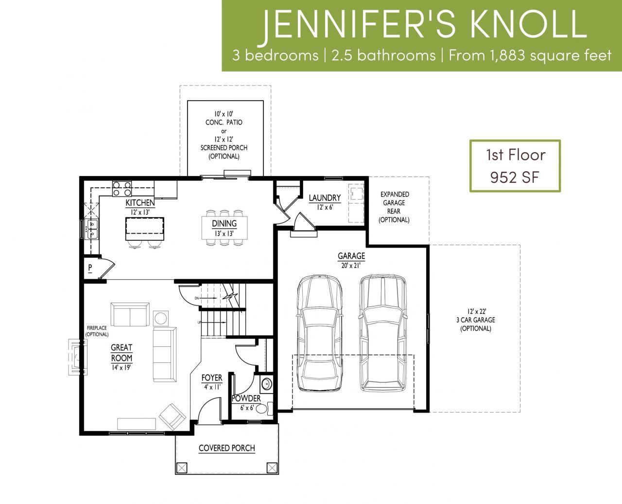 Under construction; estimated completion 4/16/26. Welcome to Brookstone Hills! Open floor plan home with 3-car garage! Spacious great room with gas fireplace. Kitchen features quartz countertops, large island, granite sink, ceramic tile backsplash, and slate appliances. Dining area opens to 12x12' screened porch. Main floor powder room and laundry room with built-in wood cubbies. Primary bedroom features a large walk-in closet and private bath with tile shower & dual sinks. Basement is stubbed for bathroom & includes egress window for future expansion. 10yr builder's limited warranty & 15yr dry basement warranty included! For floor plan & design selection information, please call or email agent. Photos are of a similar model.