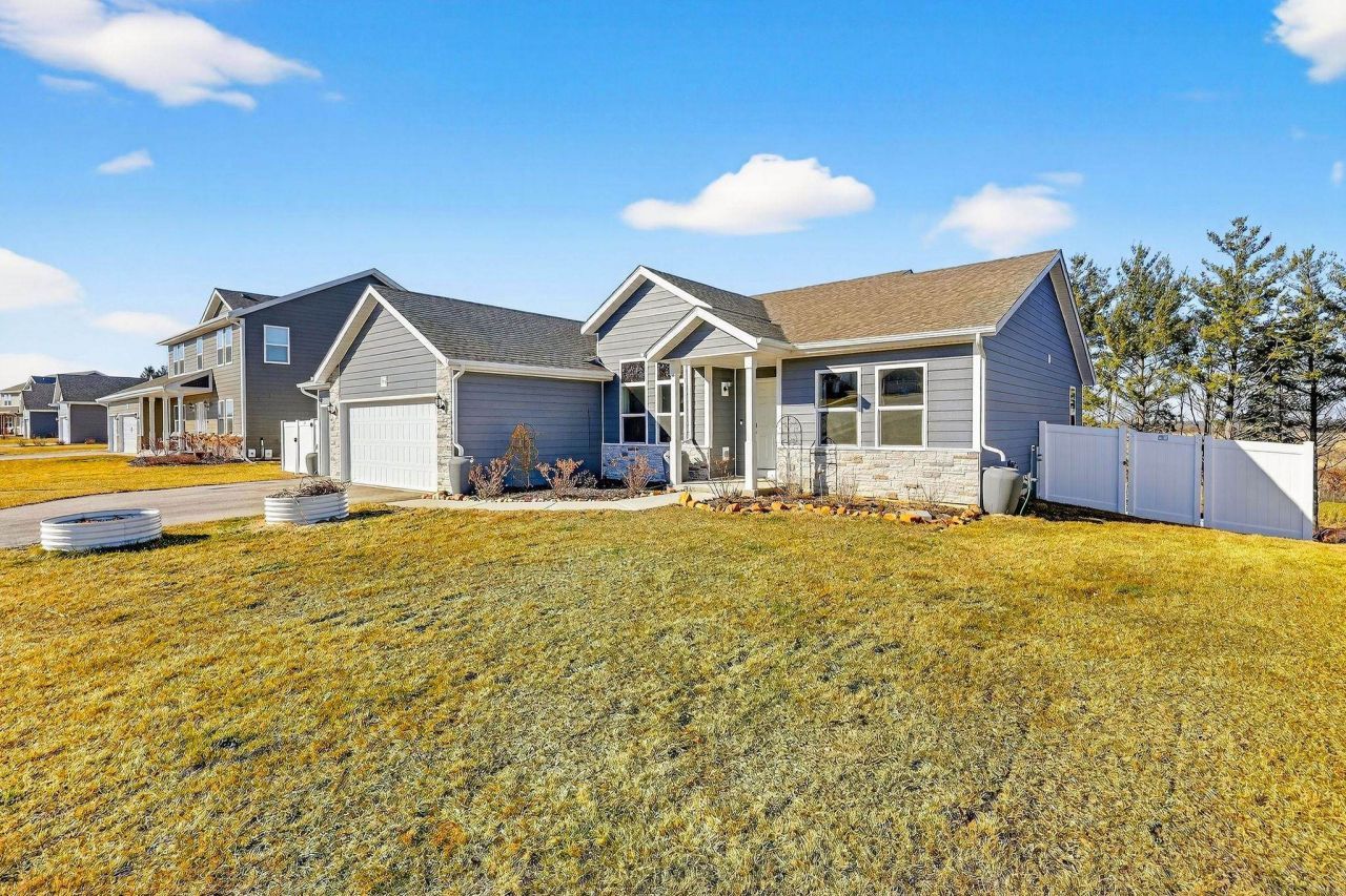 River Views, .4+ Acre Lot & Better-Than-New Upgrades in Belleville! Built just two years ago, this nearly 2,000 sq ft ranch offers one of the best lots in the neighborhood with beautiful views of the Sugar River & rolling countryside. The bright, open layout features split bedrooms, soaring 10?12' ceilings, white trim & cabinetry, solid surface counters, & a spacious kitchen with island, pantry, & stainless appliances. The walk-out lower level opens to the backyard & includes a rough-in for a future bath & excellent expansion potential. Since purchasing, the owner has added a fully fenced backyard, sod and landscaping, deck stairs, insulated & drywalled garage, water softener, utility sink, ceiling fans with lights throughout, rain barrels, and Ring doorbell and Ring floodlight camera. Transferable home warranty included.