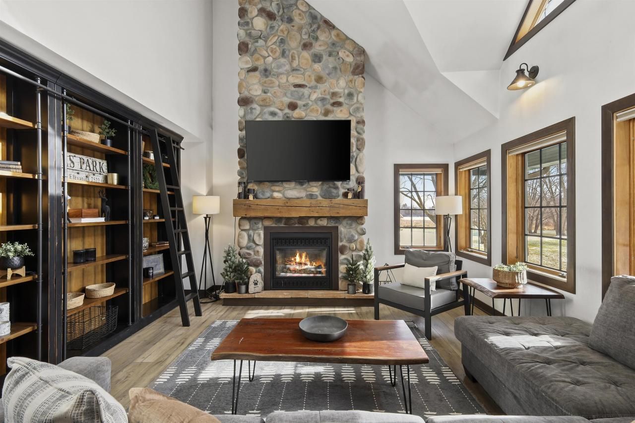 Edit mortgage details for a more accurate paymentTucked on 5+ picturesque acres, this country escape exudes luxury & warmth. Imagine curling up with a book by the large stone fireplace in a living room bathed in natural light. The heart of the home is a timeless, updated kitchen boasting rustic alder cabinets, modern quartz countertops, and a charming coffee bar begging for your espresso machine. Summer belongs to you! Host unforgettable gatherings on the deck, sip cocktails at the newly added poolside bar, or take a sunset dip in your private inground pool. As the stars come out, gather around the firepit for s'mores. When it???s time to relax, the primary suite offers a serene, classic ensuite. Unwind in the lower level with a movie or utilize the bonus room???perfect for a quiet office or meditation retreat. Enjoy unparalleled comfort with in-floor radiant heat throughout. Bring your big dreams: the 43x23 heated garage and 26x45 barn offer endless versatility for your creative or mechanical pursuits. Your private resort awaits!