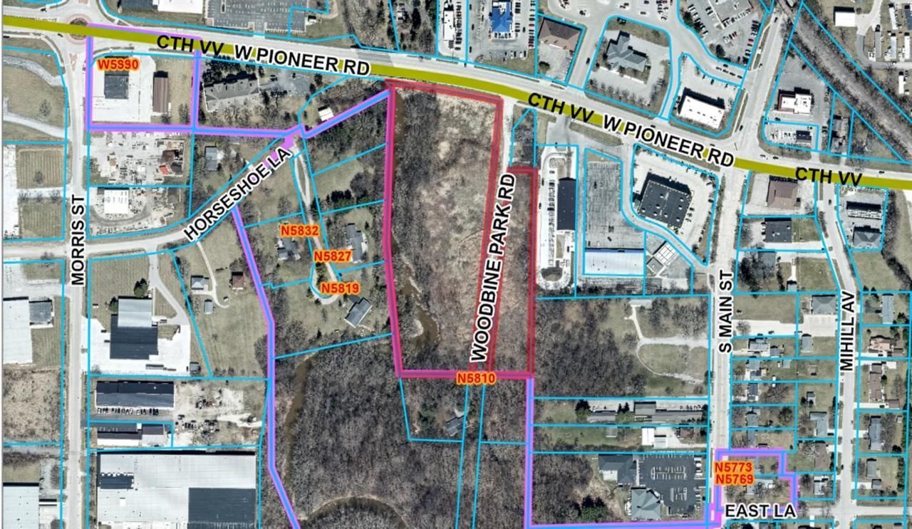Appx 1 acre in a high traffic location with great visibility & retail potential! Zoned C-2 commercial. Subject to land division and zoning approval of the front lot with frontage on Pioneer Road. Municipal Sewer & Water at street. Acreage can be adjusted to fit buyers plans. Additional acreage available for $299,900.