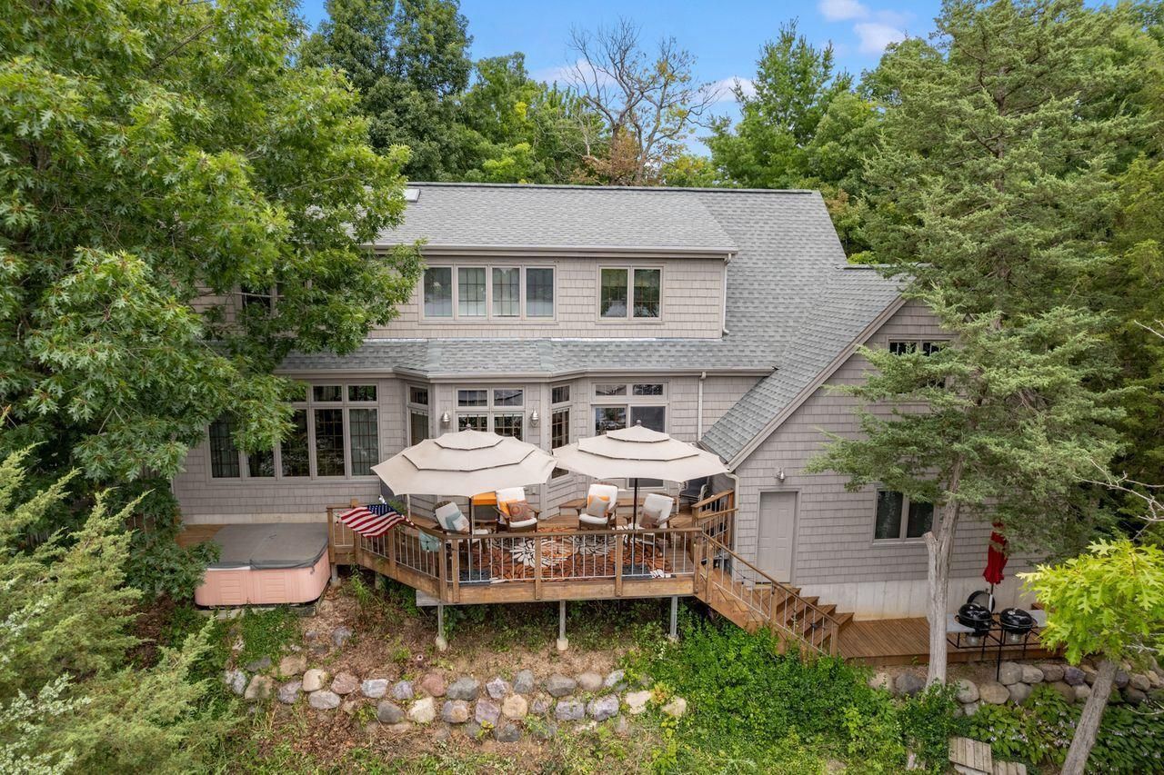 First Time Offered! Spectacular Lake Wisconsin home with 164 ft +/- of sandy bottom frontage! This incredible 3 bed, 3 bath, custom built, New England Cape Cod sits majestically on a .59-acre wooded lot overlooking the lake with southern exposure and beautiful lake views! Features include an updated kitchen/dining area with quartz island & stainless appliances, living room with a wood fireplace, enormous windows and sliding door leading out to an expansive deck with a hot tub! A car lover's dream - 3 car garage with one stall heated & air conditioned and a bonus guest room suite above garage! Outside enjoy the beautifully landscaped yard and deck near the water. Lots of great recreation nearby - Devil's Lake, Great Sauk Trail, Wisconsin Dells and 2 nearby ski resorts!