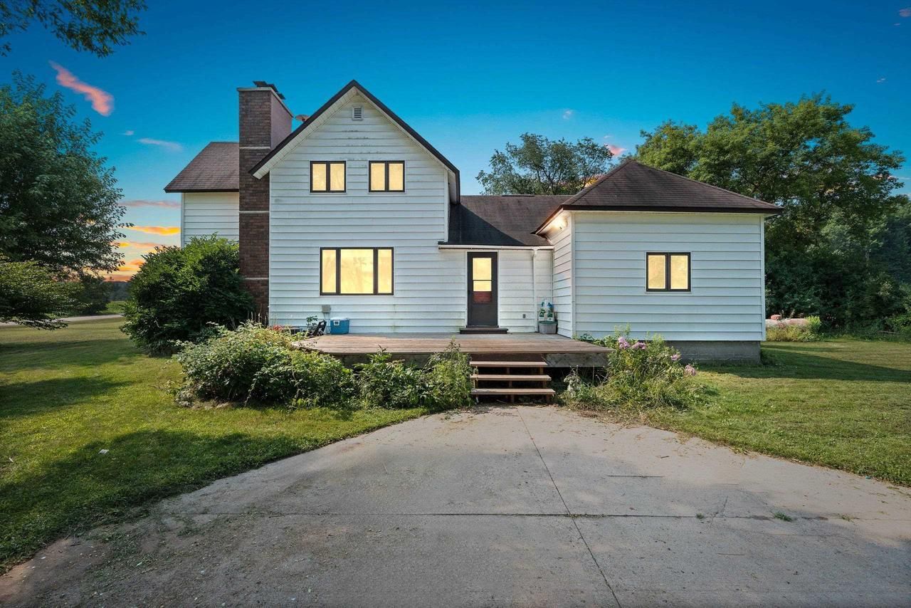 Edit mortgage details for a more accurate paymentCharming 4BR (2 up 2 on main), 2BA (1 Upper and 1 on Main) farmhouse on 2.36 acres W/approx. 326' frontage on the South Branch of the Little Wolf River. Plenty of room for a country garden. This 1,695 sq ft two-story features an eat-in kitchen, living room is graced W/wood fireplace & stone breast. Large main-floor master with walk-in closet. Large main floor laundry room may double as a pantry. The expansive basement offers ample storage with separate rooms?think canning room and game rooms. Front and rear entryways open to a spacious 20x16 front deck and large yard surrounded by old-growth pines. Two detached garages with dual driveways?one garage has a slab ready for future expansion. Updated water system, newer furnace and water heater. Peaceful setting just minutes from Iola.
