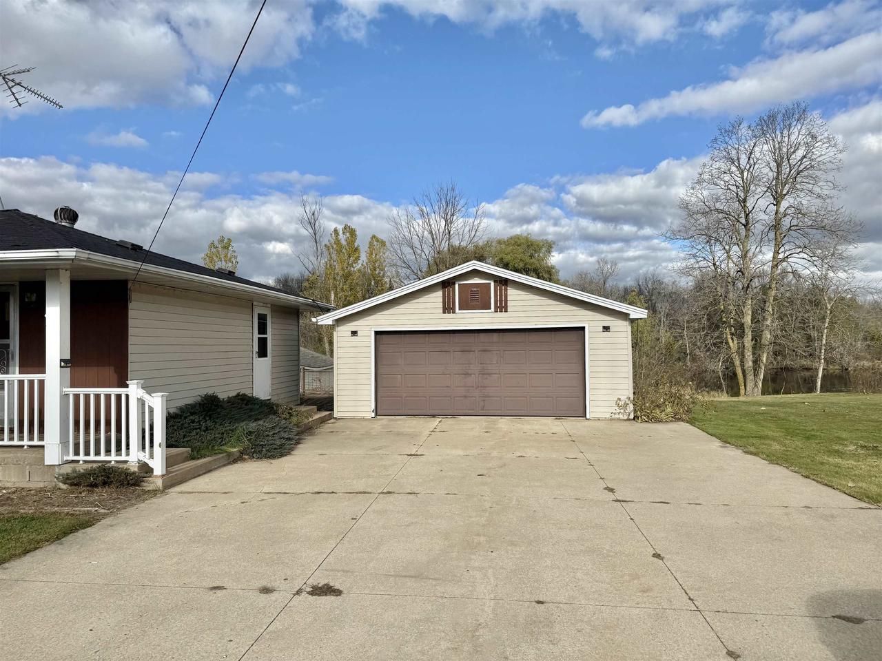 Natural hardwood floors throughout this charming property located in the quaint village of Caroline. The large kitchen and dining room overlook the large yard and has views of the Embarrass River and the Caroline Pond. Spacious living room and the laundry has been installed on the main level. Lower level walkout to the yard and Embarrass River. The detached 2.5 car garage is insulated and ready for your hobbies. Additional outbuilding needs a little repair. The .9 acre lot offers plenty of room! Home is in need of some TLC.