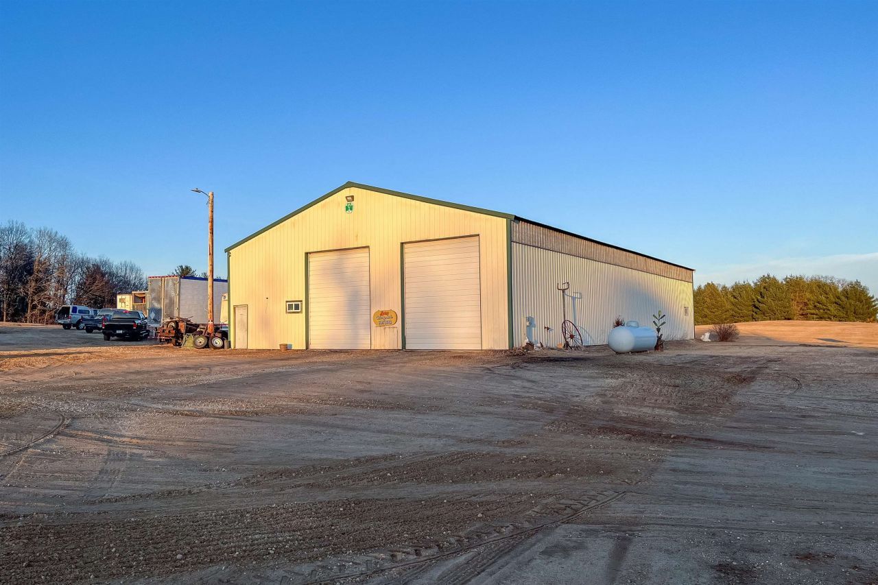 Unique Mixed-Use Opportunity: Commercial & Agricultural Zoning on One Parcel. Rarely available property offering maximum flexibility for business, storage, or recreational use. The centerpiece is a massive 50'x90' pole shed featuring a heavy-duty 6" concrete floor, efficient Modine LP heater, and a roof professionally resealed in 2025. Located in a premier recreational corridor between Wood Lake and Pleasant Lake, and just minutes from I-39. Direct proximity to the Mecan River Fishery Area provides instant access to hundreds of acres of public hunting and Class I trout fishing. High visibility and easy access make this an exceptional site for a home-based business, commercial shop, or the ultimate private "toy shed". Property cross-listed see broker to broker info.