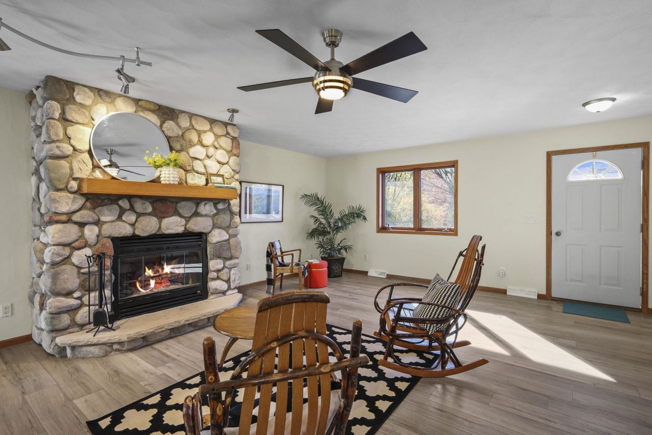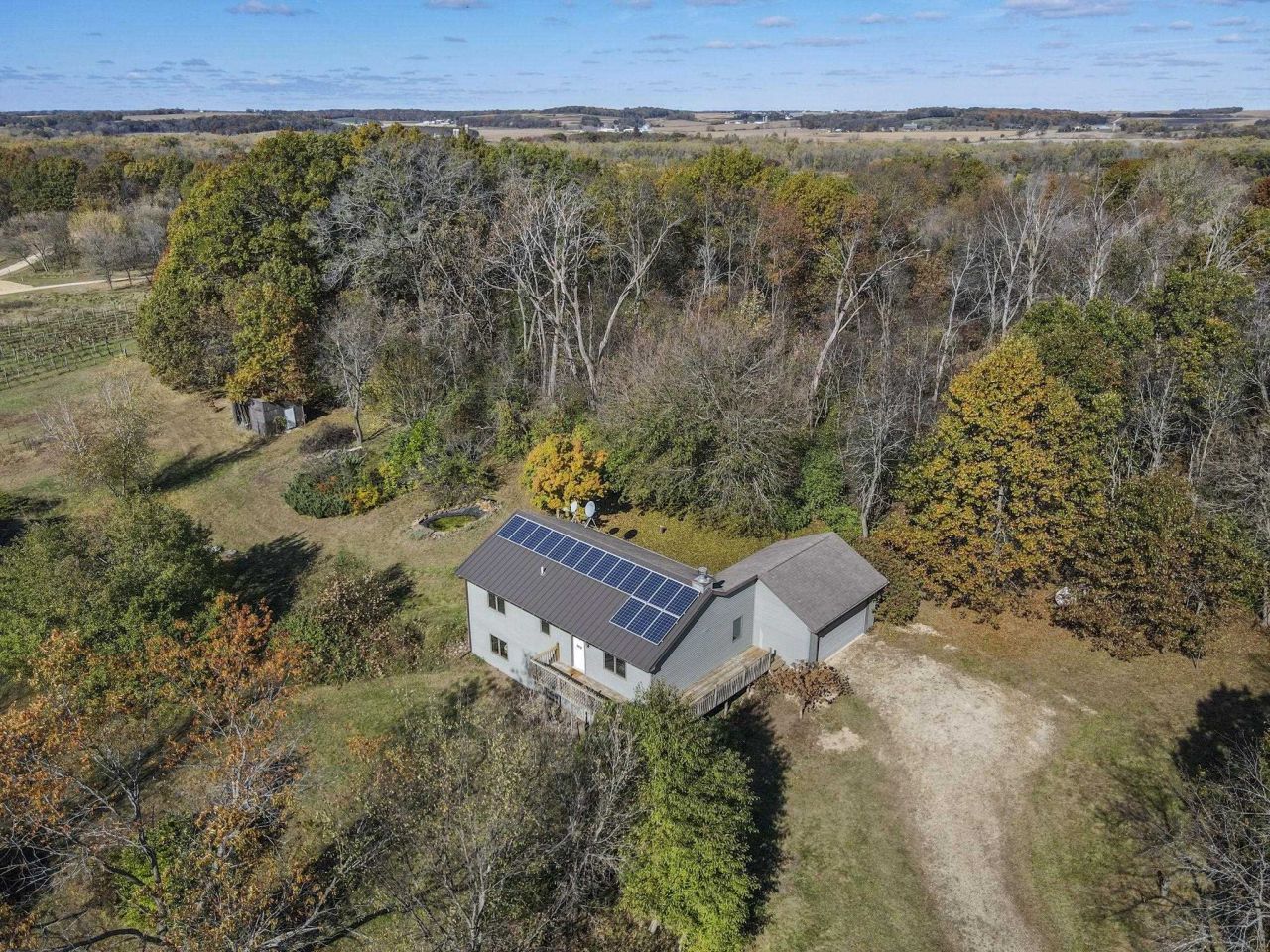 In the market for a beautifully maintained home with land for your hobbies or animals? 6 sunny acres boast an oak forest, restored native prairie with trails, small orchard & a vineyard?endless opportunities for you to make it your own! Step inside this bright & charming energy-efficient home & let your worries melt away. The inviting eat-in kitchen seamlessly connects to the living area and fireplace, great for entertaining. The walkout basement features 2 bedrooms, a rec room, and a full bath, providing ample space for everyone to relax and enjoy. Take coffee and your binoculars out to the south-facing deck for stunning views of birdlife, sunrises, and sunsets. Recent upgrades include new copper piping, solar panels (avg profit of $150 a month!), new flooring throughout, improved insulation & siding, an electric car charger, and an underground/programmable irrigation system. Room for horses, pets, hobbyists & nature enthusiasts! Sugar River Bike Trail across Zurfluh road.