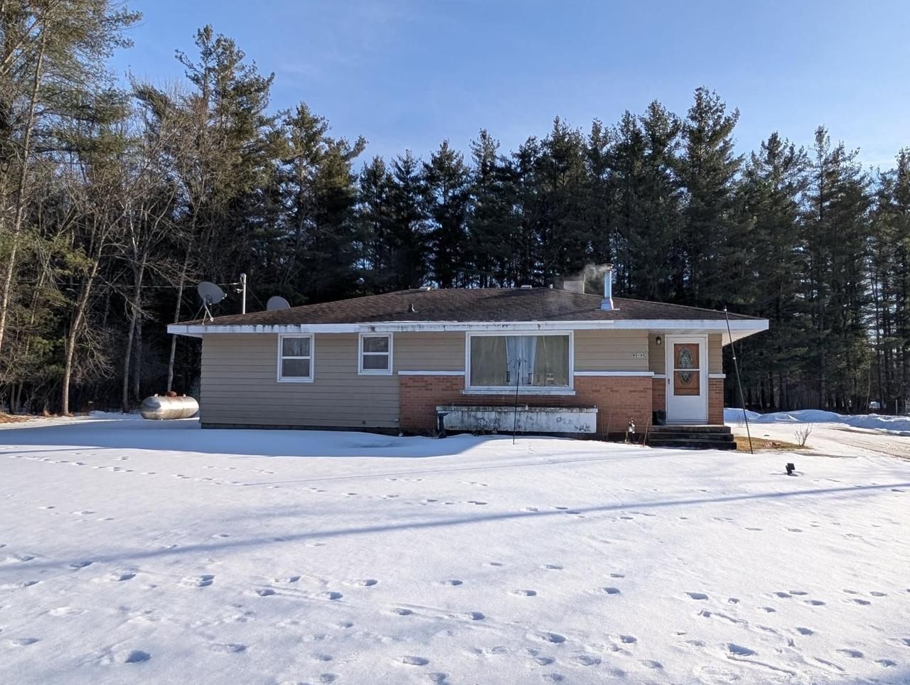 Country Living only a short distance from the edge of town, situated on a 1.08 Acre corner parcel, Nice Privacy, Big Yard, Paved Driveway. Lots of room for outside activates or expansion. Ranch Home with 3 Bedrooms & 1 Full Bath (tub/shower) Open Kitchen & Dining Area, Electric SS Stove, Microwave/Hood & Refrigerator are included. There is space to add a dishwasher. Back Entry leads into a spacious mud room area with Washer/Dryer (also included). Large Living Room with a free standing Wood Burning Fireplace which is a great addition to heat during the long cold winter months, Bedrooms are all nice size with closets, 2.5 stall detached garage, point well & conventional septic. Crawl space has a Sure Dry Basement System with transferable warranty, ensures the crawl stays protected & dry.