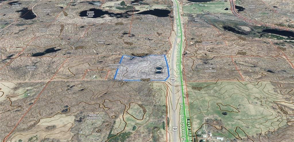 This wooded tract has beautiful rolling hills, an hour glass pond and easy access just off of US Hwy 53. The highly contoured ponds provide a great backdrop for your future home, cabin or business as this tract has 27.81 acres zoned agriculture and 5 acres zoned commercial. There is a driveway approach installed with a mulched path to a potential building spot. The timber is primarily aspen and mixed hardwoods with dense saplings providing a nice visual buffer from the highway along with good habitat for grouse, deer and turkey.
