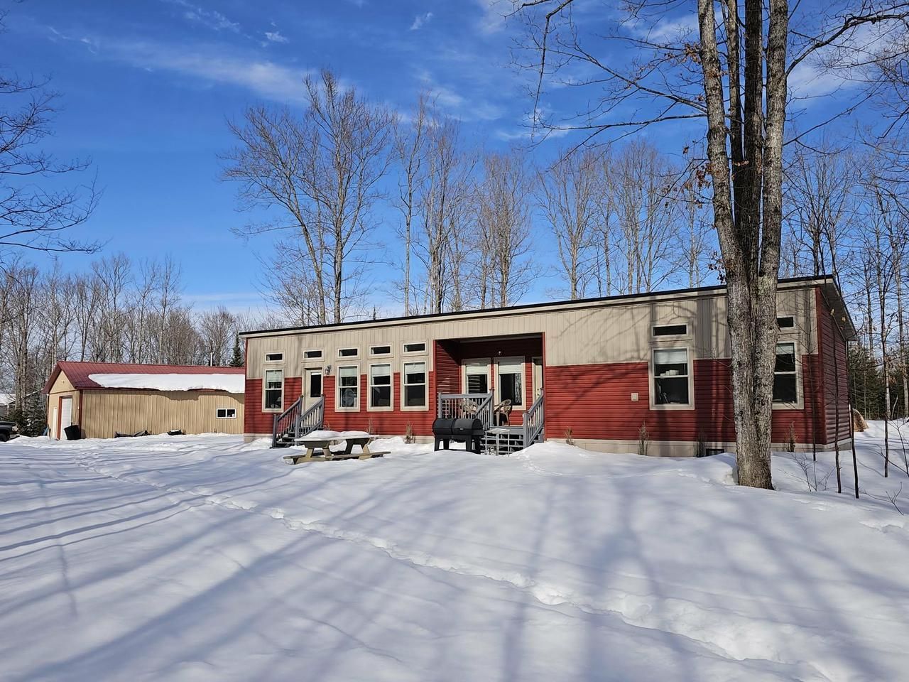 Well-maintained 2021 manufactured home offering 2 bedrooms and 2 full baths on secluded 2.93 wooded acres. This inviting home features a spacious primary suite with private bath for added comfort and privacy. The bright open-concept living area flows into a well-appointed kitchen with beautiful cabinetry and ample storage, ideal for daily living or entertaining. Enjoy a peaceful country setting with groomed walking trails, abundant wild berries, and plenty of privacy. Located near the scenic Groveland Mine Ponds, also nearby is fishing, swimming, and camping, and off-road trails for outdoor enthusiasts. The heated garage offers 220 amp service, 2 offices perfect for projects or storage. Includes double-door shed, gazebo, and camping areas. Great year-round home, getaway, or investment!